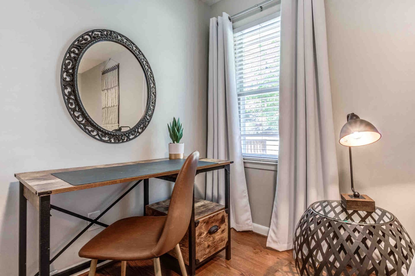 Bit o' Raleigh Bungalow is centrally located to many Triangle area attractions. Several grocery stores and restaurants are within a 5 minute drive from the home. Walk just around the block (0.2 mi) to a lovely town park with playground equipment, tennis courts, grill, picnic shelter, and a pond. There are many local parks, hiking trails, and biking trails nearby. I am happy to suggest our favorite local restaurants and activities!