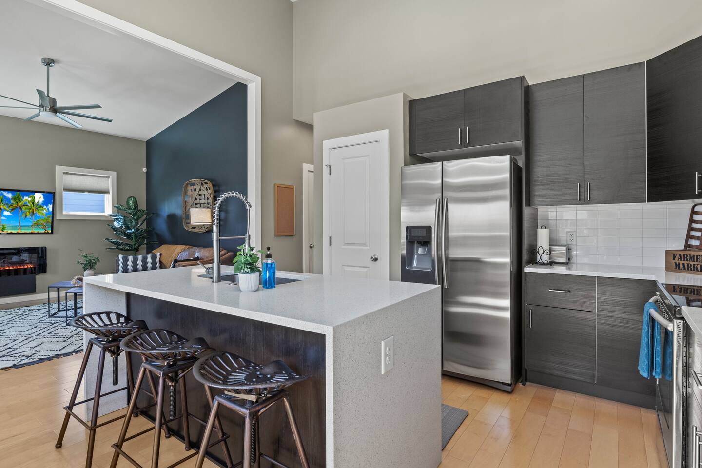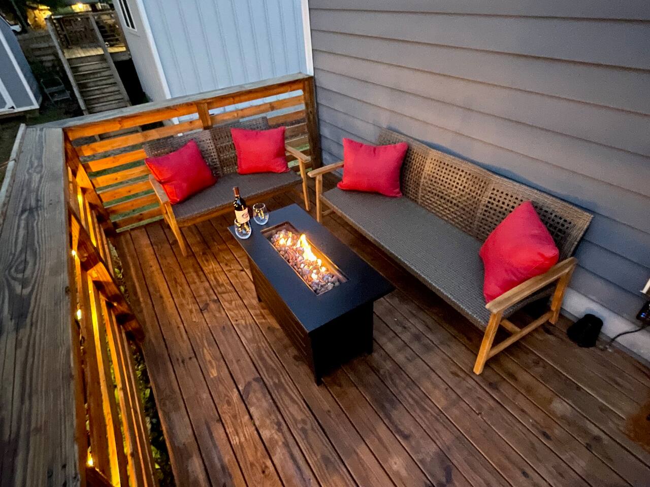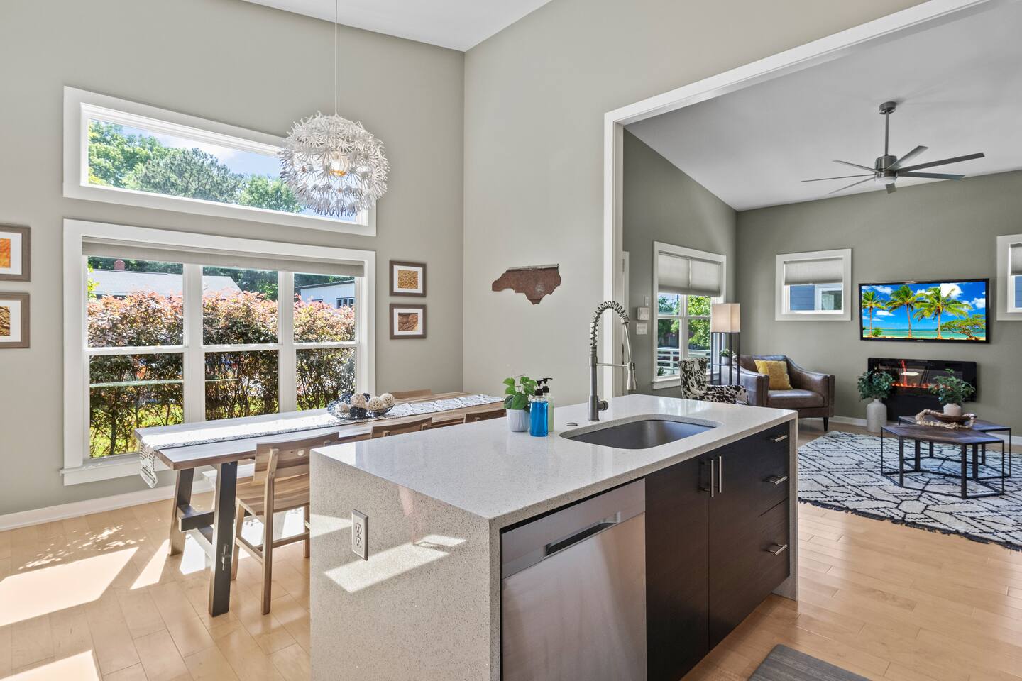 Savor your morning coffee from the chairs on the front porch. Eat lunch on the back deck overlooking the quiet back yard, or enjoy unwinding in the evening under the glow of the patio lights. Work from home in one of two desk areas equipped with fast internet. Bring your own login for the two Smart TV’s. Enjoy preparing meals in the fully equipped kitchen. Enjoy dinner with the family dining table that seats 6-8. Washer and dryer available for your laundry needs. Our house features three charming bedrooms: an NCSU themed bedroom, a Carolina Hurricanes themed bedroom, and a North Carolina State Fair themed bedroom. Each bedroom in our house features comfortable sleeping arrangements, with king beds in two rooms and a third bedroom with two twins and a twin trundle. We even provide a portable mattress and pack n play and booster seat/high chair. Pets and kids love our fenced backyard! The colorful LED lit game shed is equipped with many game favorites including Sauce Toss - a hockey styled cornhole game - fun for kids and adults. We have many things your pet may need such as a crate, food and water bowls, paw towels, and clean up bags. We offer parking for two cars in the driveway, and additional street parking is available. Our home is conveniently located close to downtown Raleigh in the South Park district, a neighborhood that is undergoing redevelopment. Our home is best suited for those who feel comfortable with a diverse culture and city living. Our house is walkable to Red Hat Ampitheater, Duke Energy Performing Arts Center, the Raleigh Convention Center, and Transfer Street Food Hall and much, much more! Many ride share services are available, too. We can't wait to welcome you to our wonderful city and charming abode! **Love this property but the dates aren't available? Check my other listings for the same level of luxury and comfort!**