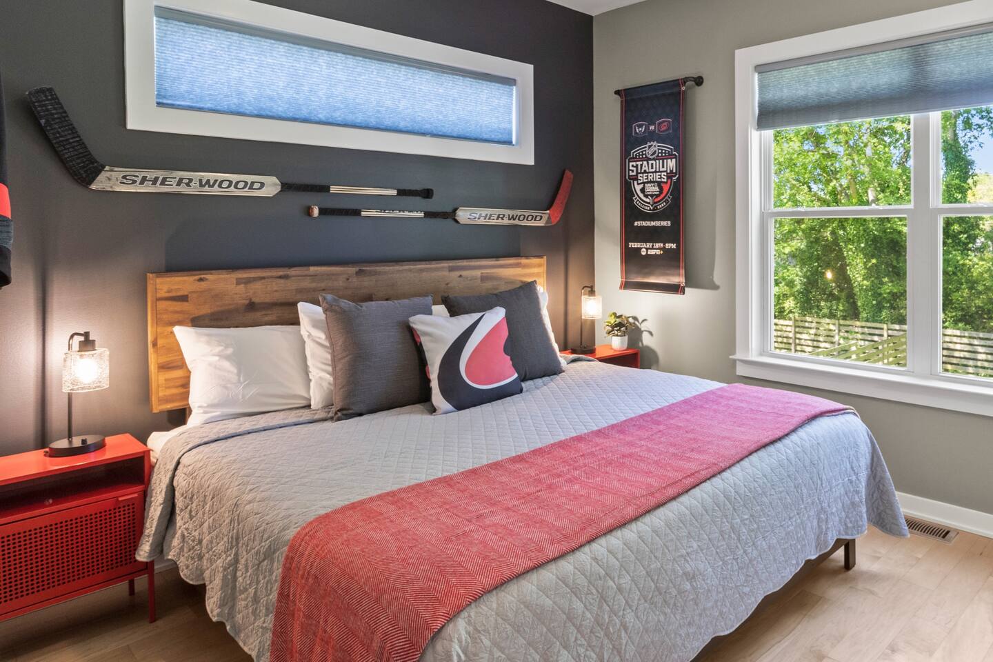 Enjoy our one-of-a-kind home in the heart of downtown Raleigh with touches of NC agriculture sprinkled throughout. We provide all the amenities you'll need for a comfortable stay, including a fully equipped kitchen, fenced backyard, and a game shed for entertainment. Perfect for grilling out before a NC State or Carolina Hurricanes game! Our house features three charming bedrooms: NCSU themed bedroom, Hurricanes themed bedroom, and North Carolina State Fair themed bedroom. ZSTR-000139-2023